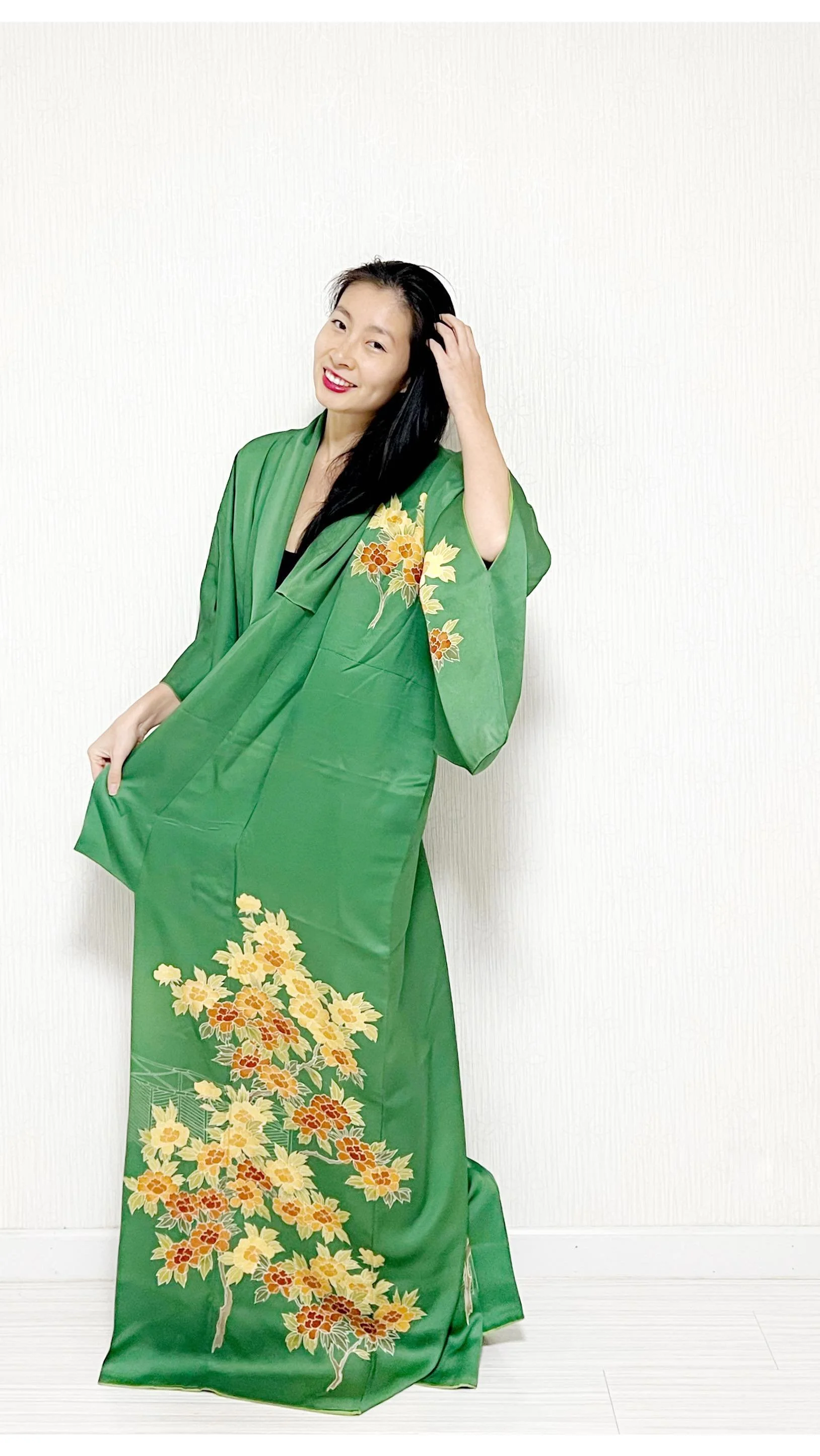 Thank you for your interest and wish to have your own bespoke kimono piece selected from our ever changing vintage kimono collection. I’ve personally created these reconstructed kimono designs to utilise as much of the kimono fabric as possible, minimising waste and giving these gloriously, beautiful kimonos a new lease on life.